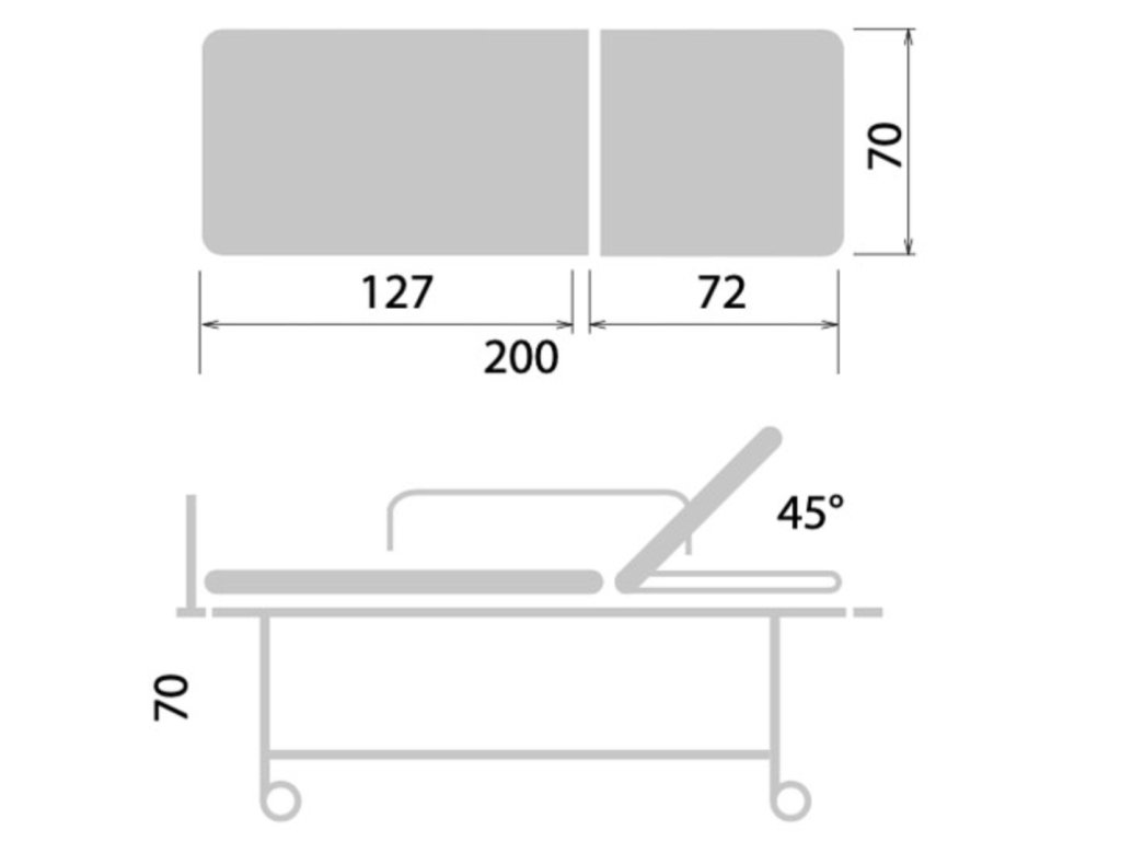 Bezmotorové transportní lehátko s pevnou výškou stolu. Vhodné pro převoz pacientů.