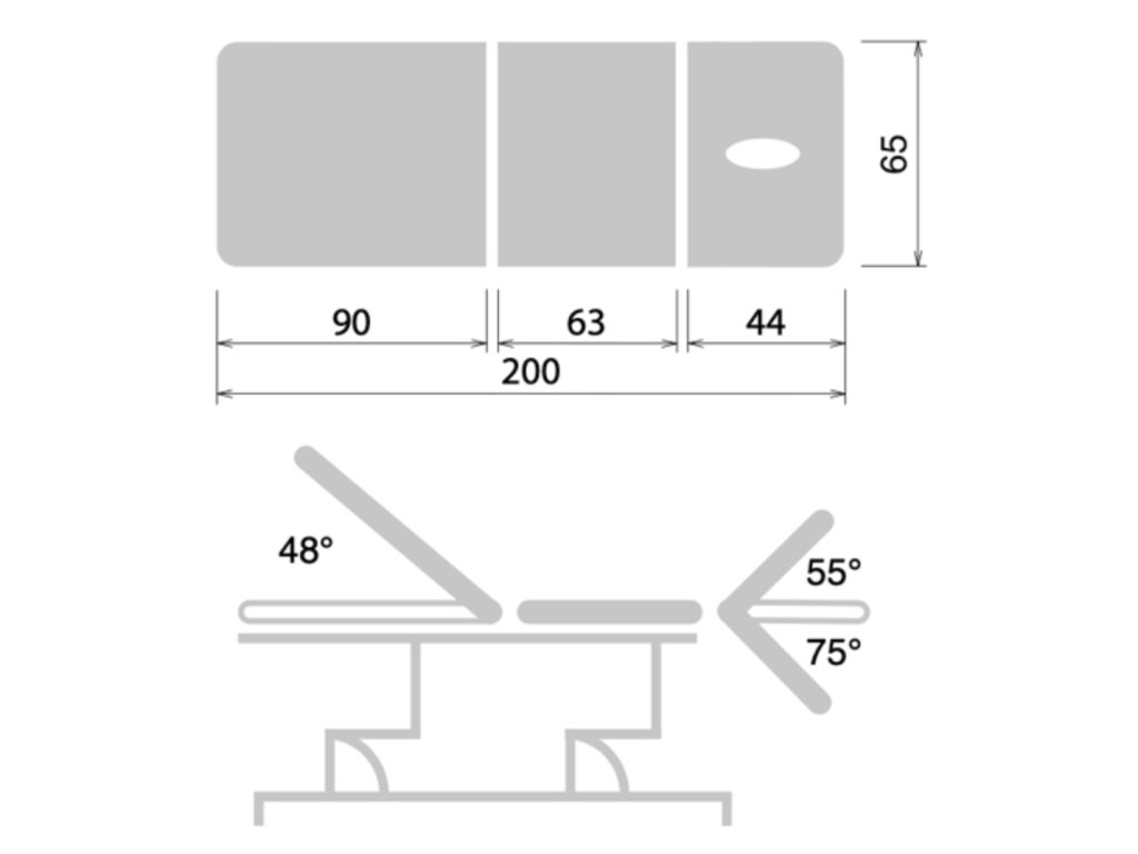 Jednomotorové lehátko stabilní konstrukce s elektrickým nastavením výšky stolu. 200 x 65 cm, 3segmentové