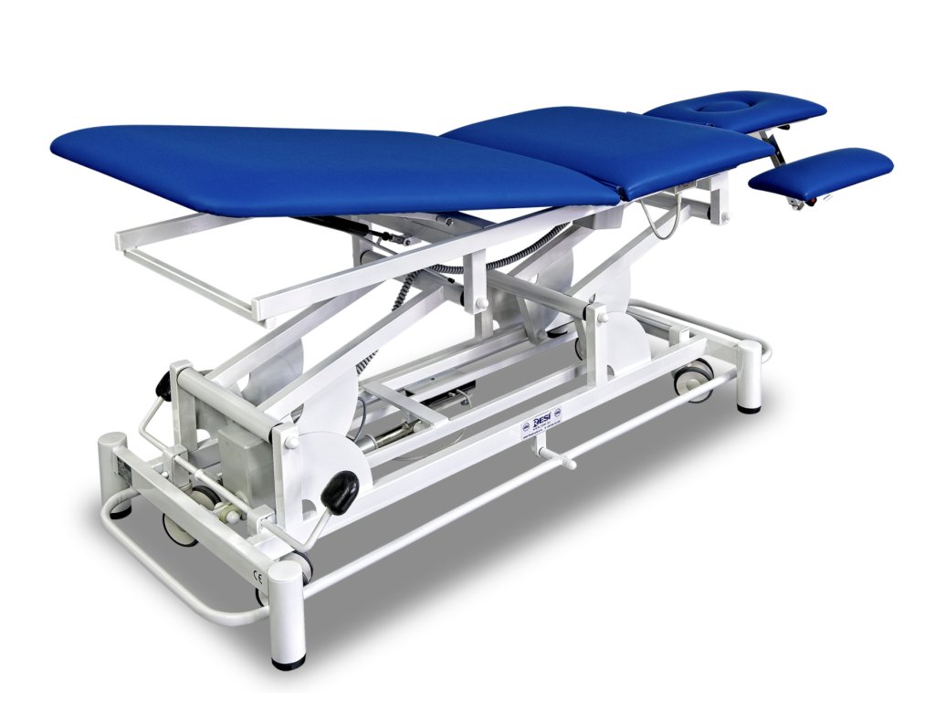 Jednomotorové lehátko stabilní konstrukce s elektrickým nastavením výšky stolu. 200 x 65 cm, 2 segmentů