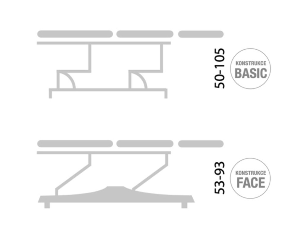 • elektricky nastavitelná výška: 50 - 105 cm konstrukce Basic, 53 - 93 konstrukce FACE