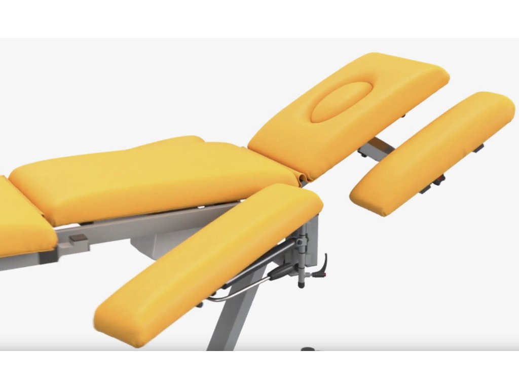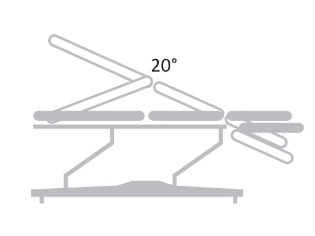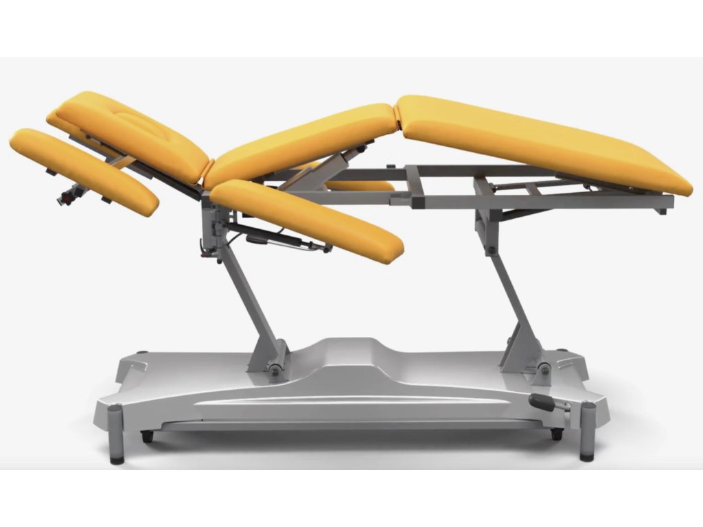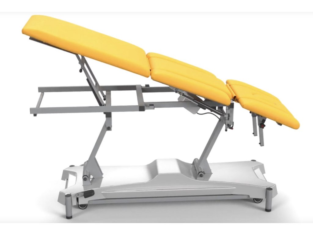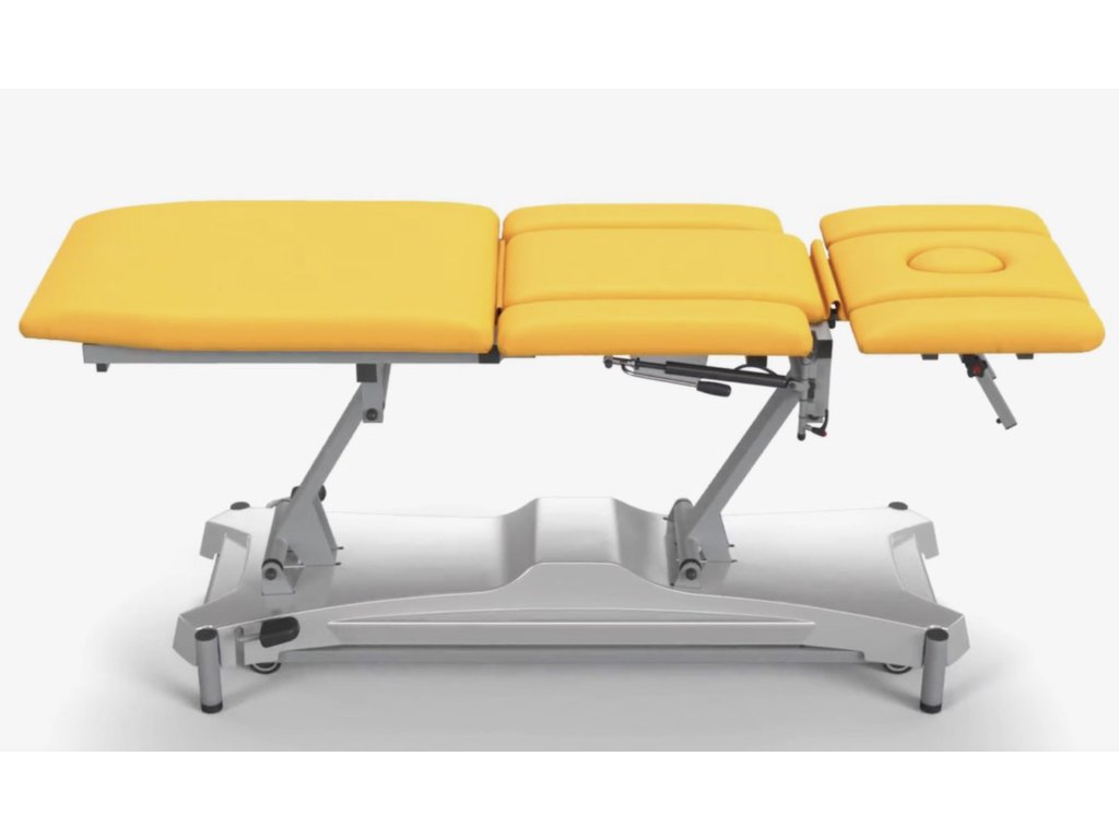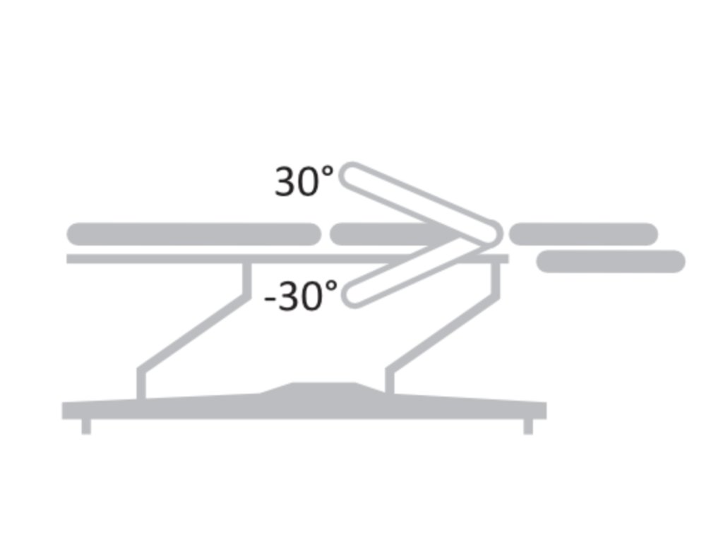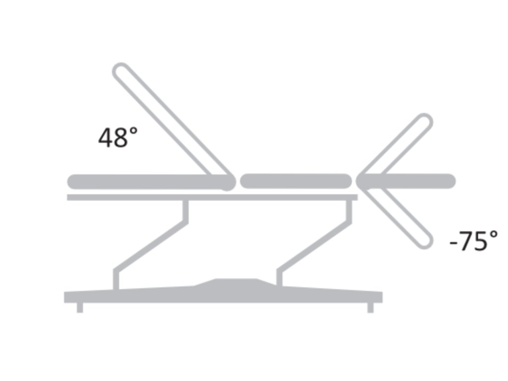 Dvoumotorové lehátko stabilní konstrukce s elektrickým nastavením výšky stolu a elektrickým nastavením drenážní polohy stolu.